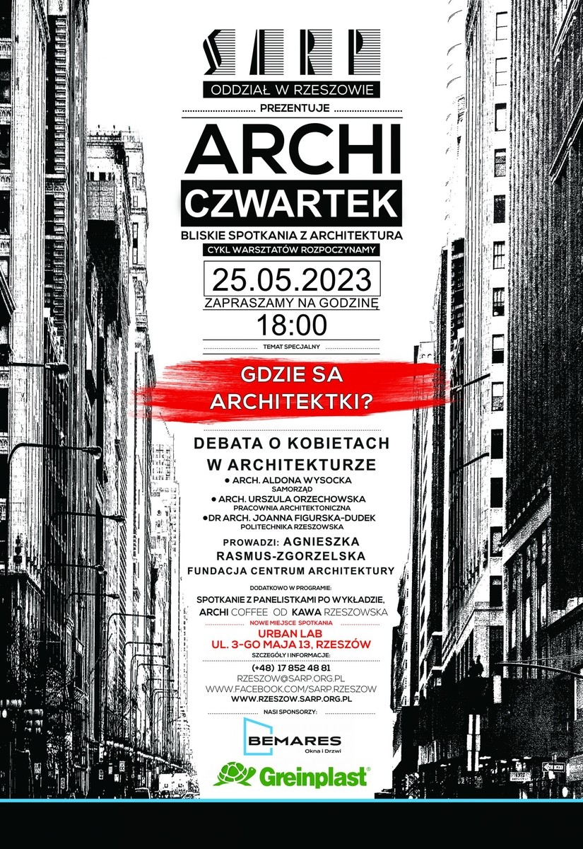 Temat czwartkowego spotkania z serii "Archiczwartki Bliskie Spotkania z Architekturą" to “GDZIE SĄ ARCHITEKTKI? – Debata o kobietach w Architekturze”.