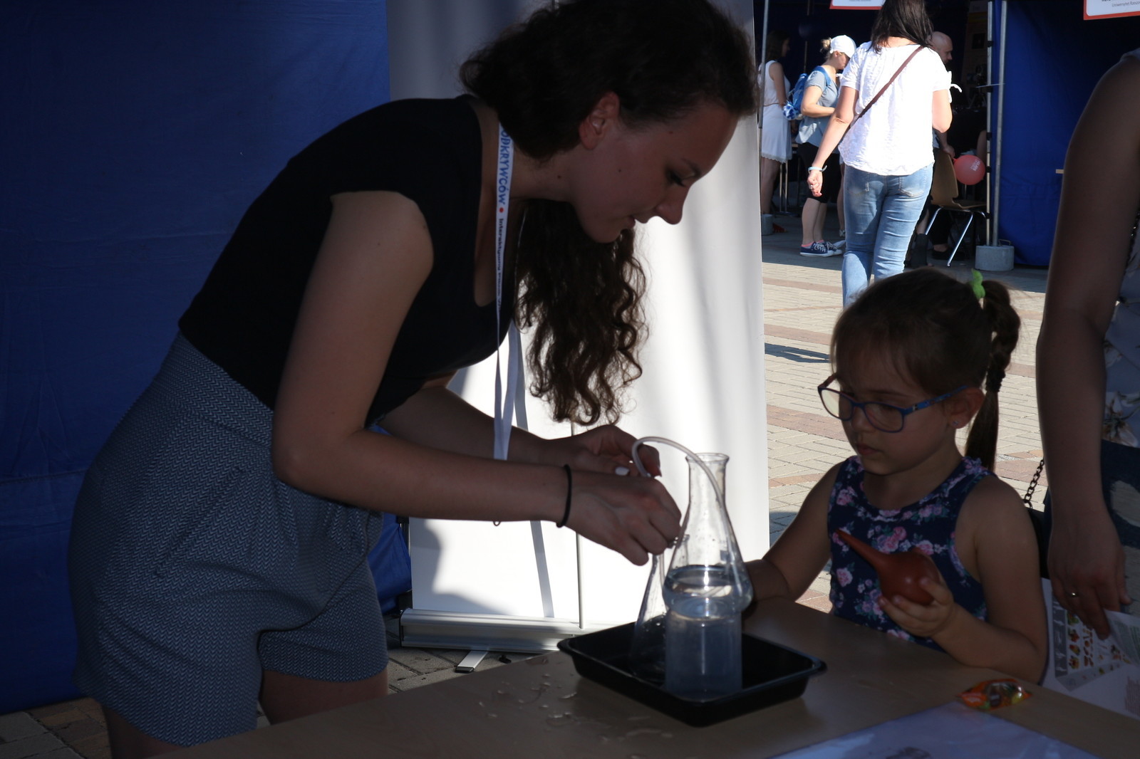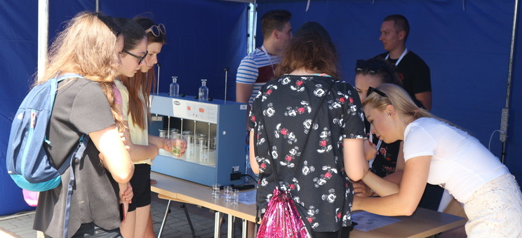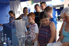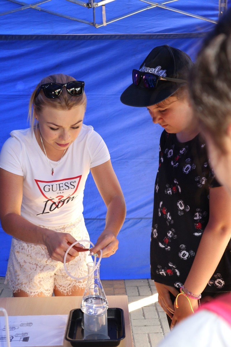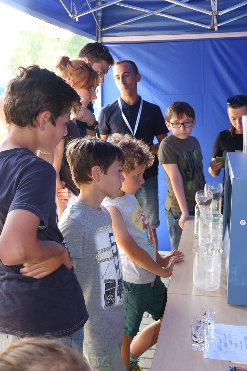 W ramach przygotowanego stoiska studenci zaprezentowali doświadczenia związane z wodą. Zwiedzający, przede wszystkim dzieci i młodzież, mogli zobaczyć jak oczyszcza się wodę i ścieki , jak również mieli okazję wykonać proste badania laboratoryjne jak np. badanie przewodności właściwej różnych rodzajów wód - wody destylowanej, kranowej oraz mineralnej. Dodatkowo chętni próbowali przelewać wodę z użyciem lewara.