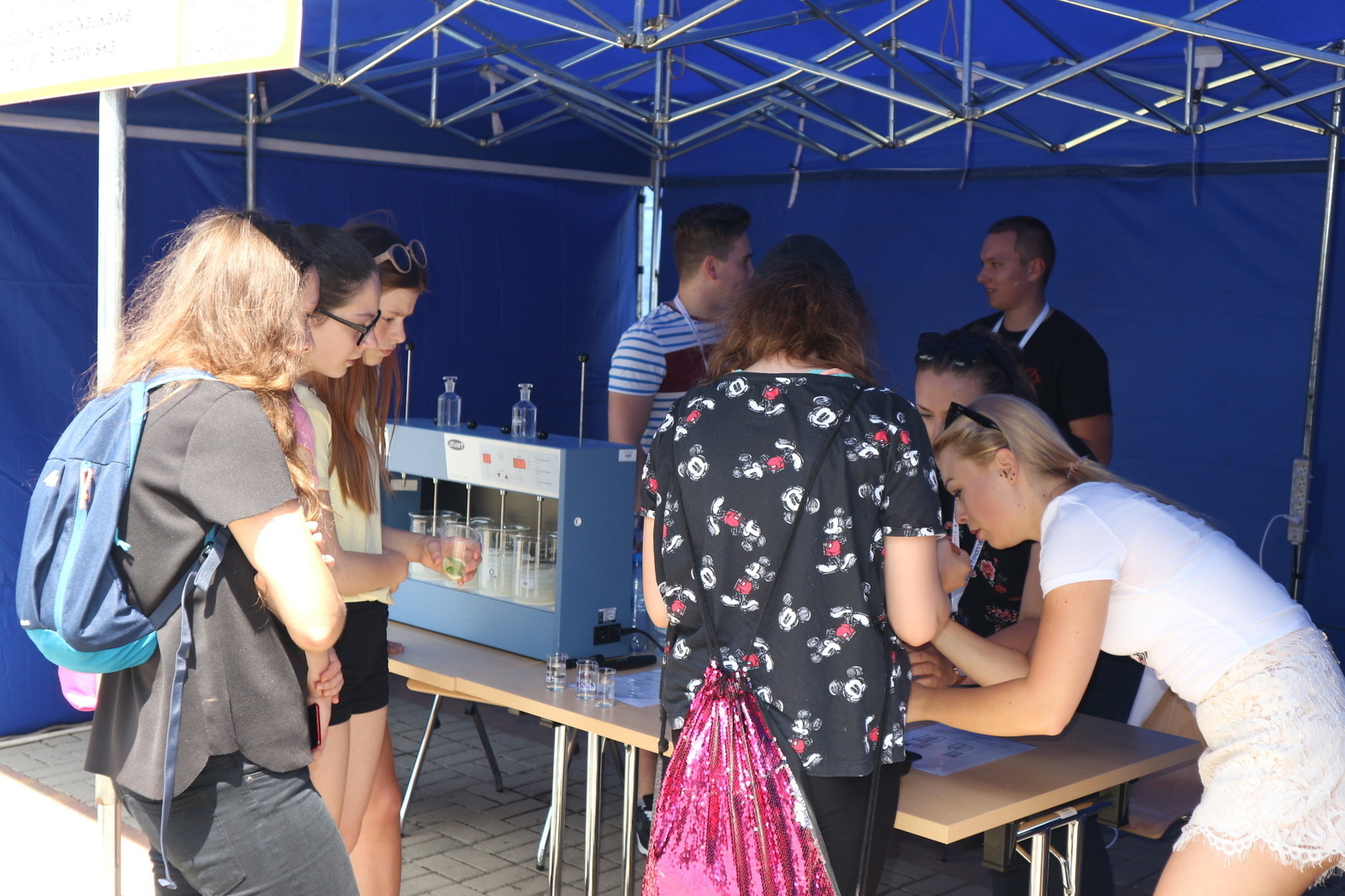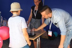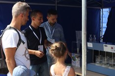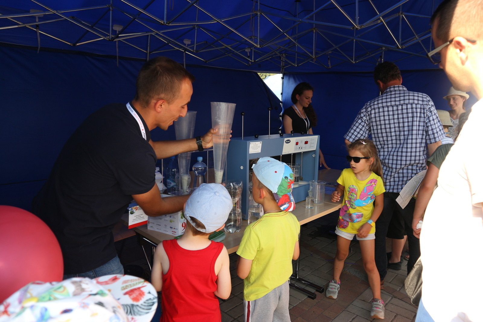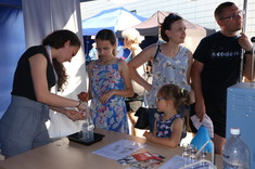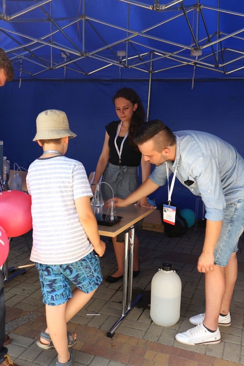 W ramach przygotowanego stoiska studenci zaprezentowali doświadczenia związane z wodą. Zwiedzający, przede wszystkim dzieci i młodzież, mogli zobaczyć jak oczyszcza się wodę i ścieki , jak również mieli okazję wykonać proste badania laboratoryjne jak np. badanie przewodności właściwej różnych rodzajów wód - wody destylowanej, kranowej oraz mineralnej. Dodatkowo chętni próbowali przelewać wodę z użyciem lewara.