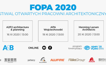 Festiwal Otwartych Pracowni Architektonicznych FOPA (online) - 16 - 20 XI— wejdź na profil FB lub YT „Architektura & Biznes” i poznaj świat pracowni architektonicznych.