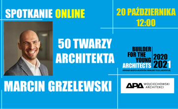 Spotkanie live odbędzie się 20.X, godz. 12.00 na profilu facebook/4YoungArchitects. Zorganizowane zostanie w ramach programu Builder for the Young Architects 2020-2021.