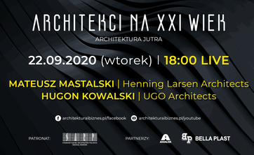 SAVE THE DATE! 22 września (wtorek), godzina 18:00 - weź udział w live organizowanym przez A&B: „Architekci na XXI wiek. Architektura jutra”- goście: Mateusz Mastalski, Hugon Kowalski