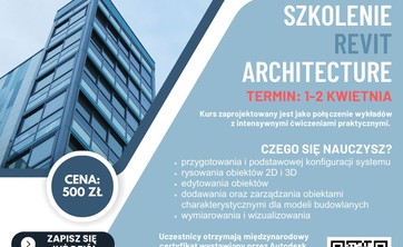 Samorząd Studencki Politechniki Rzeszowskiej organizuje certyfikowane szkolenie REVIT ARCHITECTURE, które odbędzie się w dniach 1-2 kwietnia 2023 r. Szkolenie przeprowadzi firma "KOMPUGRAF".