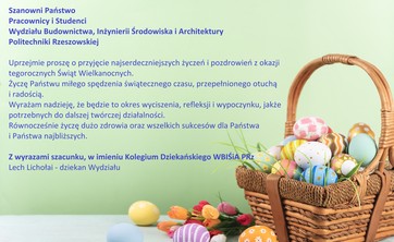 Życzenia Wielkanocne Władz WBIŚiA