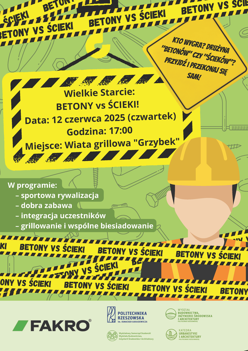 Zapraszamy Was na najbardziej zakręcone wydarzenie integracyjne roku – Betony vs Ścieki! Szykujcie się na solidną dawkę zabawy, rywalizacji i grillowych zapachów, które zostaną z nami aż do sesji ![]()