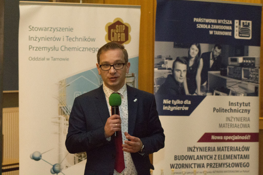 z chemią" przedstawił historię bezpiecznego szkła. Dr inż. Marek Chyc (PWSZ w Tarnowie, Grupa Azoty SA, nauczyciel ZST) w referacie "Metody pomiarowe kiedyś a dzisiaj" w syntetyczny sposób omówił ewolucję metod pomiarowych stosowanych w chemii. Seminarium zakończyły pokazy chemiczne „Kolorowy świat chemii” przygotowane przez uczniów z klas chemicznych - technik analityk i technik technologii chemicznej.