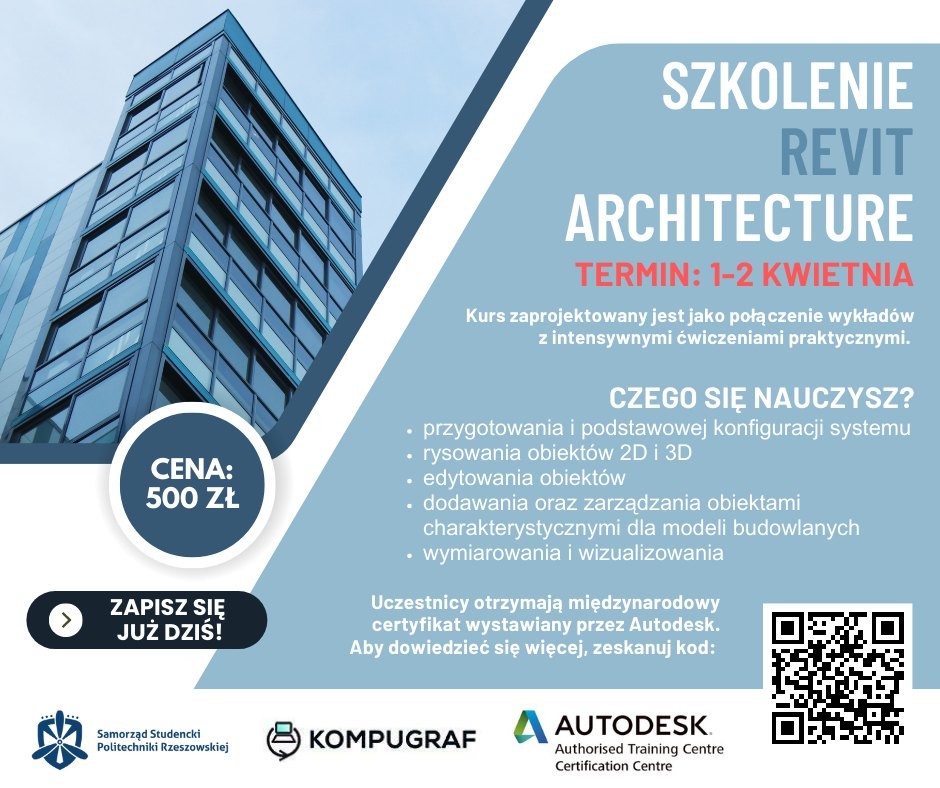 Samorząd Studencki Politechniki Rzeszowskiej organizuje certyfikowane szkolenie REVIT ARCHITECTURE.