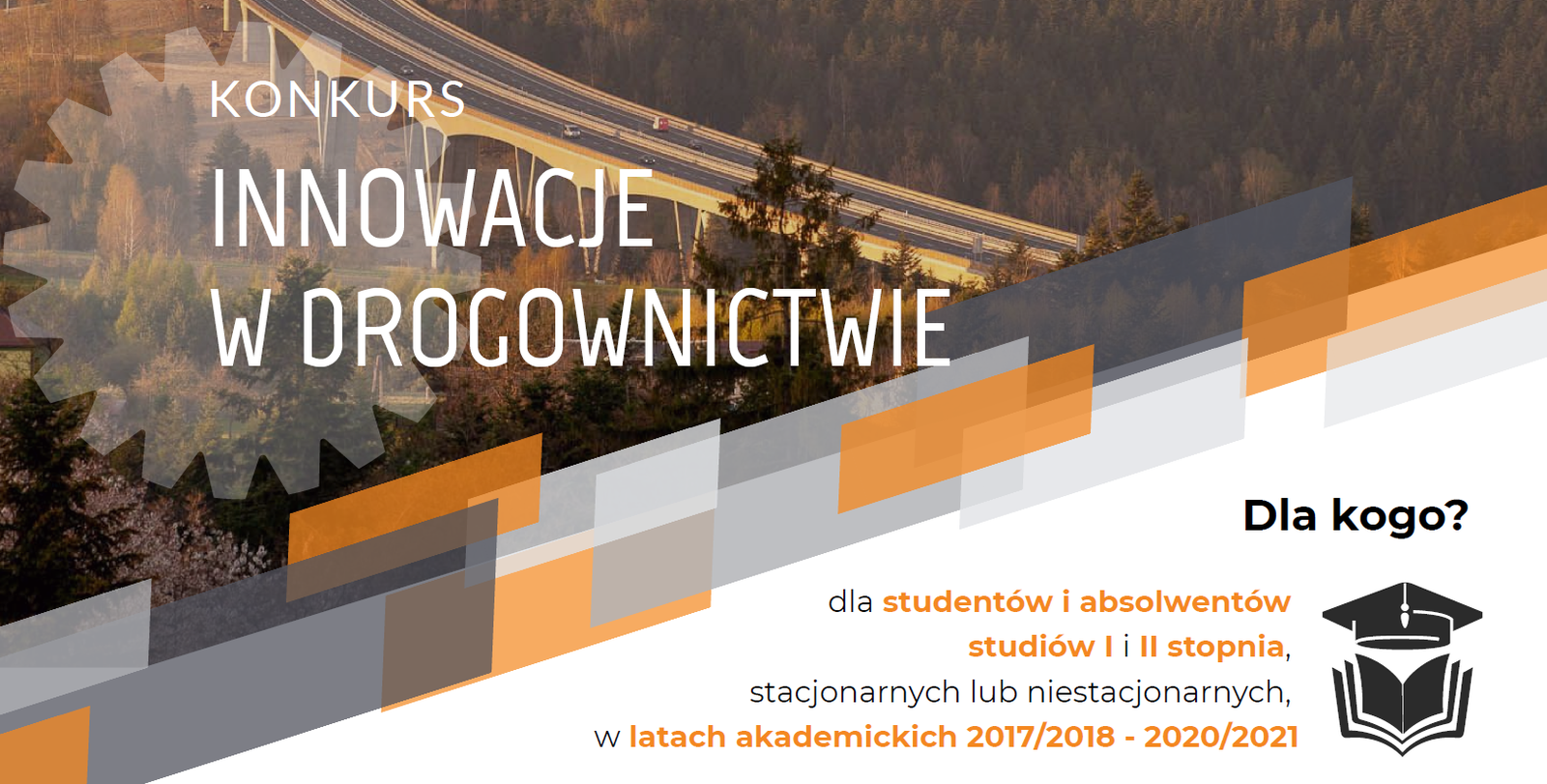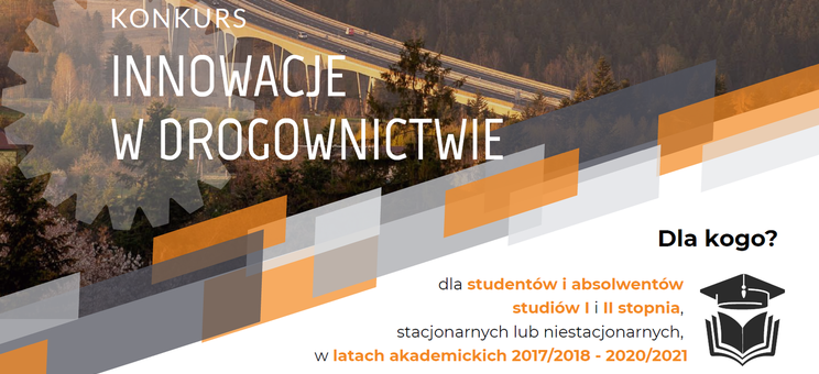 Generalna Dyrekcja Dróg Krajowych i Autostrad ogłosiła I edycję konkursu „Innowacje w drogownictwie”. Konkurs adresowany jest do studentów i absolwentów studiów pierwszego i drugiego stopnia, stacjonarnych lub niestacjonarnych w latach akademickich 2017/2018 - 2020/2021.