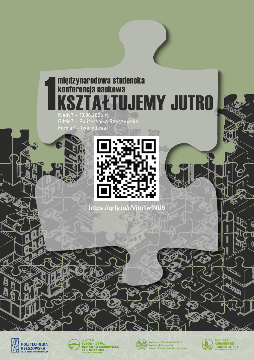 Wydział Budownictwa, Inżynierii Środowiska i Architektury Politechniki Rzeszowskiej we współpracy z samorządem wydziałowym WBIŚiA zaprasza państwa serdecznie na I międzynarodową konferencję "KSZTAŁTUJEMY JUTRO - SHAPING TOMORROW'', w której można wziąć udział stacjonarnie lub zdalnie na panelach w tematach: