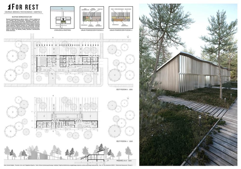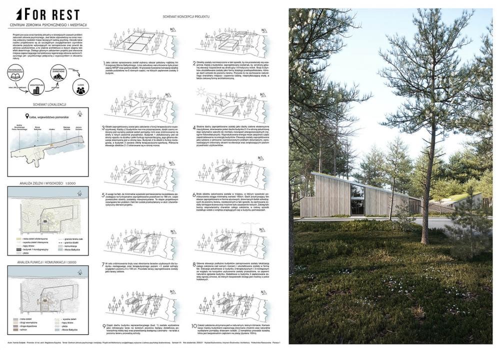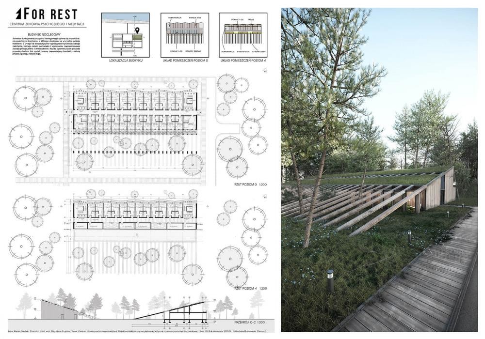 Drugą nagrodę w kategorii dyplomów inżynierskich otrzymała inż. arch. Kamila Gołąbek z Politechniki Rzeszowskiej za dyplom pt. „Centrum zdrowia psychicznego i medytacji. Projekt architektoniczny uwzględniający wytyczne z zakresu psychologii środowiskowej”, obroniony pod kierunkiem dr inż. arch. Magdaleny Szpytmy.