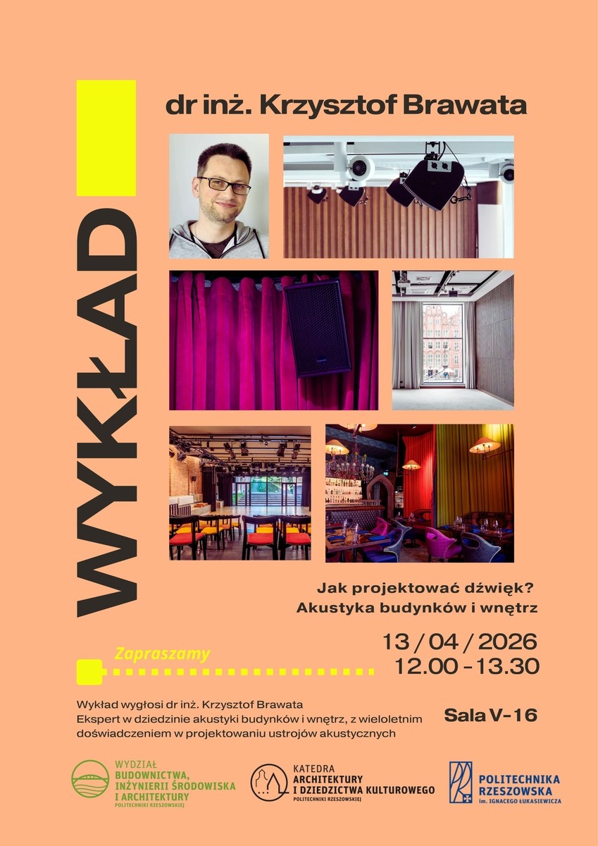 Temat: Jak projektować dźwięk? Akustyka budynków i wnętrz. - 20 kwietnia, godz. 12:00, sala V-16