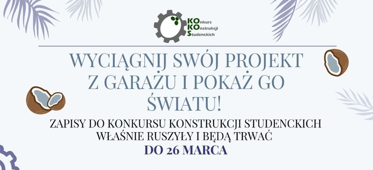 Ruszyły zapisy do VII edycji Konkursu Konstrukcji Studenckich KOKOS, organizowanego przez Niezależne Zrzeszenie Studentów. Swoje projekty można zgłaszać do 26 marca w aż 6 kategoriach: