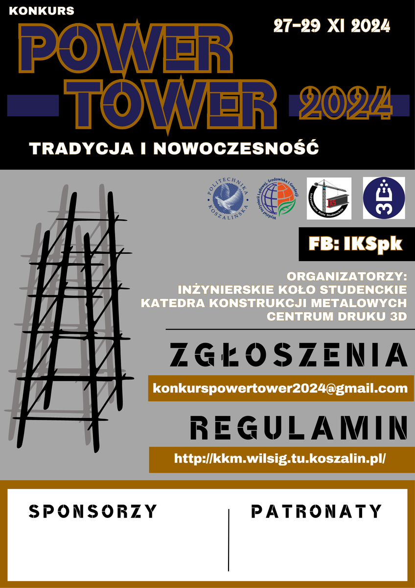 Politechnika Koszalińska serdecznie zaprasza do udziału w konkursie Power Tower 2024 - Tradycja i Nowoczesność organizowanym na uczelni. Konkurs odbędzie się w terminie 27-29.11.2024.