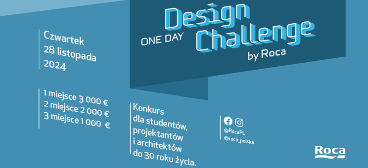 Międzynarodowy konkurs „Roca One Day Design Challenge” powraca do Polski. Tegoroczna edycja wydarzenia odbędzie się 28 listopada w Bibliotece Uniwersytetu Warszawskiego (BUW). Mogą w niej wziąć udział posiadający polskie lub ukraińskie obywatelstwo studenci, młodzi architekci i projektanci. Zadanie konkursowe to stworzenie oryginalnych i innowacyjnych rozwiązań związanych z przestrzenią łazienkową w ciągu zaledwie jednego dnia. Rejestracja do konkursu jest już otwarta, a na zwycięzców czekają atrakcyjne nagrody!