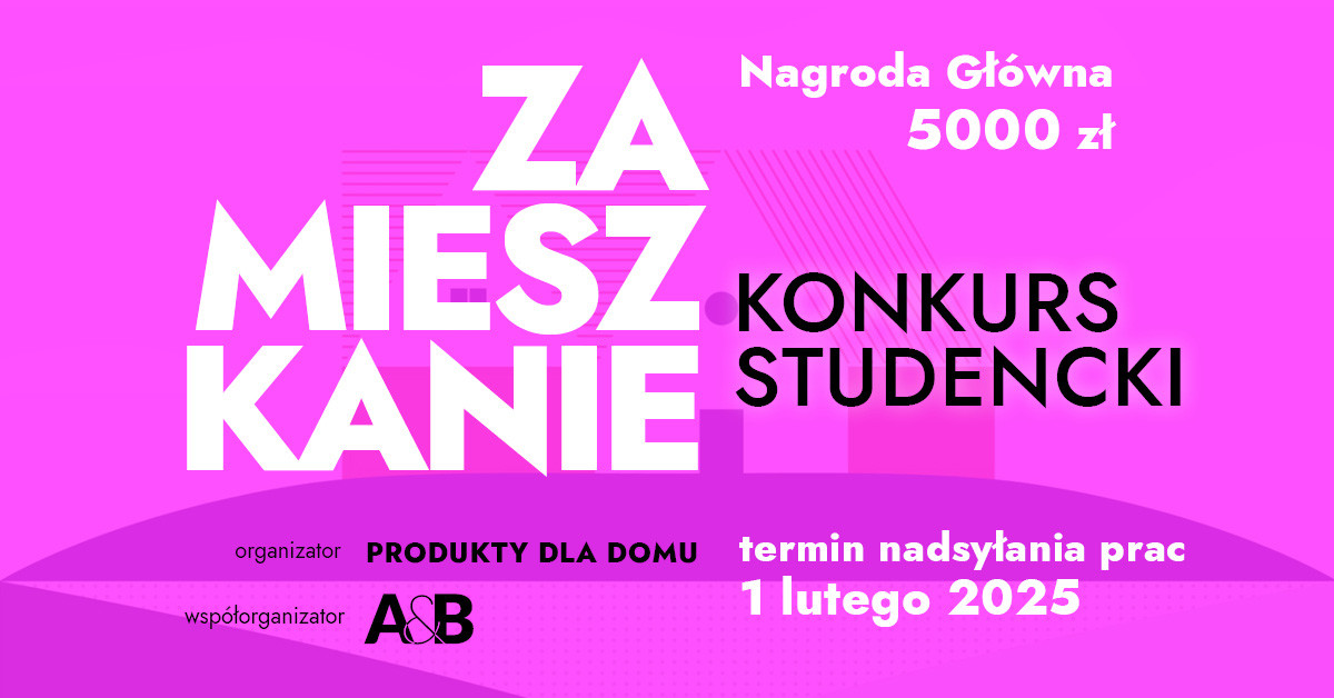 Miesięcznik Architektura & Biznes serdecznie zaprasza studentów i studentki Wydziałów Architektury, Wydziałów Architektury Wnętrz oraz kierunków projektowych z całej Polski do udziału w edycji 2024 konkursu ZAMIESZKANIE.
