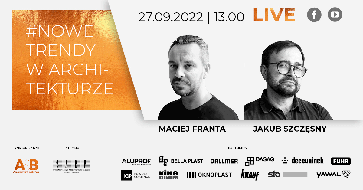 MACIEJ FRANTA i JAKUB SZCZĘSNY gośćmi kolejnego spotkania LIVE A&B z cyklu #NOWE TRENDY W ARCHITEKTURZE