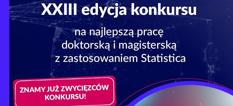 W dwudziestej trzeciej edycji organizowanego przez firmę StatSoft Polska konkursu na najlepszą pracę doktorską i magisterską przygotowaną z zastosowaniem narzędzi statystyki i analizy danych zawartych w programach z rodziny Statistica w kategorii prac magisterskich główną nagrodę otrzymała Pani mgr Angelika Pyś.