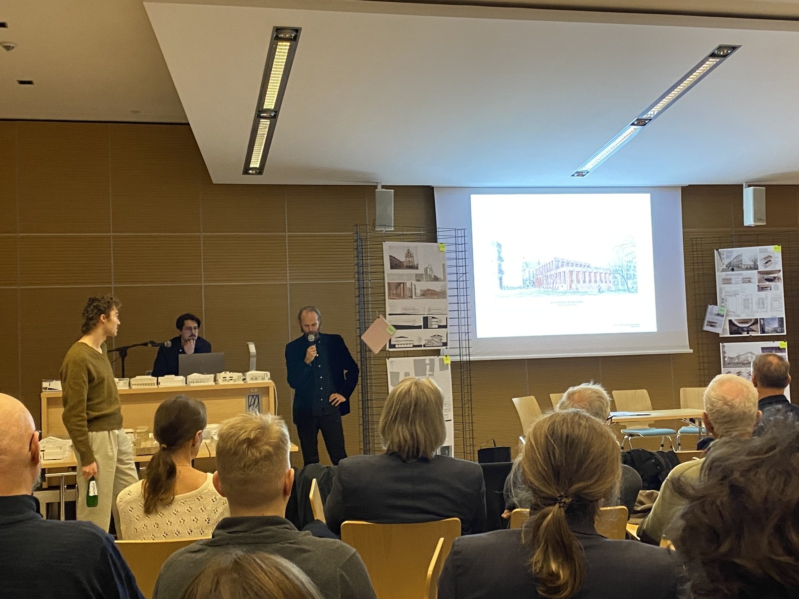 Podczas uroczystości laureaci pierwszej i drugiej nagrody przedstawili prezentację swoich nagrodzonych prac. W pierwszej kolejności wystąpili przedstawiciele autorskiego zespołu, który zdobył II nagrodę w składzie: arch. Cezary Szpytma, arch. Magdalena Szpytma, arch. Joanna Matraszek, arch. Michał Matraszek, arch. Karolina Broda. Następnie wystąpił zespół autorski, który otrzymał I nagrodę w Konkursie w składzie: arch. Karol Żurawski, arch. Szymon Chwazik, arch. Michał Teodorczyk.