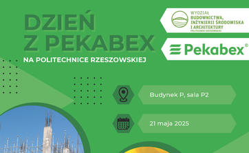 Wydział Budownictwa, Inżynierii Środowiska i Architektury oraz firma Pekabex zapraszają do udziału w wydarzeniu „Dzień z Pekabex”, które odbędzie się 21 maja br. w sali P.2.