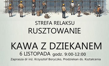 Już jutro (6 listopada 2024 r.) rano na kawę zaprasza Prodziekan ds. kształcenia dr inż. Krzysztof Boryczko. Kawa będzie serwowana na #strefaRusztowanie w bud. P. od 9 do 12.