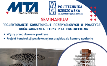 Firma MTA Engineering Sp. z o.o. oraz Katedra Konstrukcji Budowlanych PRz serdecznie zapraszają na Seminarium Wydziałowe, które odbędzie się 23 kwietnia 2024 r. w godzinach 12:15 - 13:45 w sali P-2.