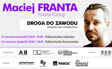 Wykład Macieja Franty z pracowni FRANTA GROUP, który odbędzie się 14 czerwca 2024 w budynku V Politechniki Rzeszowskiej w sali V-17 o godzinie 10:15.