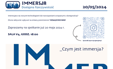 Nowe koło naukowe będzie prowadzić badania z wykorzystaniem technologii immersyjnych, mające na celu wysunięcie wniosków do tworzenia inkluzywnych przestrzeni miejskich. Spotkanie 20.05. o 18:00 w V-4