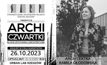 W ramach cyklu „ARCHI – CZWARTKI” 26.10. o g. 18.00 w URBAN LAB przy ul. 3-go Maja 13 w Rzeszowie odbędzie się wykład gościa arch. Kamili Głodowskiej pt. "Cyrkularność w architekturze".