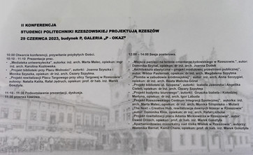 W dniu 29 czerwca 2023 roku, z inicjatywy WBIŚiA PRz w budynku P Politechniki Rzeszowskiej, w galerii „P-Okaz” odbyła się Druga Konferencja "Studenci Politechniki Rzeszowskiej projektują Rzeszów".