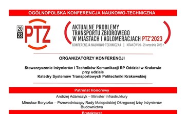 SITK Oddz. w Krakowie oraz KST w Politechnice Krakowskiej zapraszają na konferencję naukowo-techniczną "Aktualne problemy transportu zbiorowego w miastach i aglomeracjach PTZ'2023" - Kraków, 28-29.09.