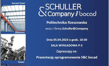 Politechnika Rzeszowska wraz z firmą Schuller&Company dnia 05.04.2023 o godz. 10:30 SALA WYKŁADOWA P-2 zapraszają na prezentację oprogramowania S&C bocad.