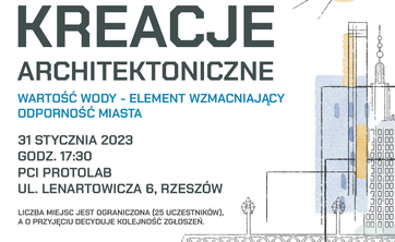 Warsztaty nt. "Wartość wody - element wzmacniający odporność miasta" odbędą się w dniu 31.01.2023 r. o godzinie 17:30 w PCI ProtoLab, ul. Lenartowicza 6, Rzeszów. Udział w warsztatach jest BEZPŁATNY!