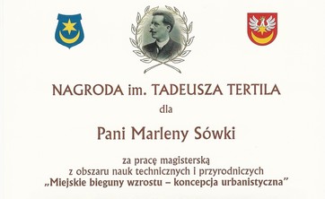 Marlena Sówka, absolwentka kierunku Architektura na Wydziale Budownictwa, Inżynierii Środowiska i Architektury otrzymała Nagrodę Tertila za najlepszą pracę magisterską.