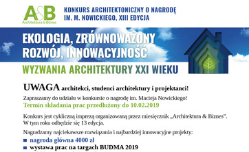 XIII edycja konkursu o Nagrodę im. Macieja Nowickiego oraz Forum Architektury na Targach Budma 2019.