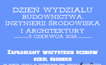 Zapraszamy wszystkich uczniów szkół średnich do wzięcia udziału w tegorocznym Dniu Wydziału Budownictwa, Inżynierii Środowiska i Architektury!
