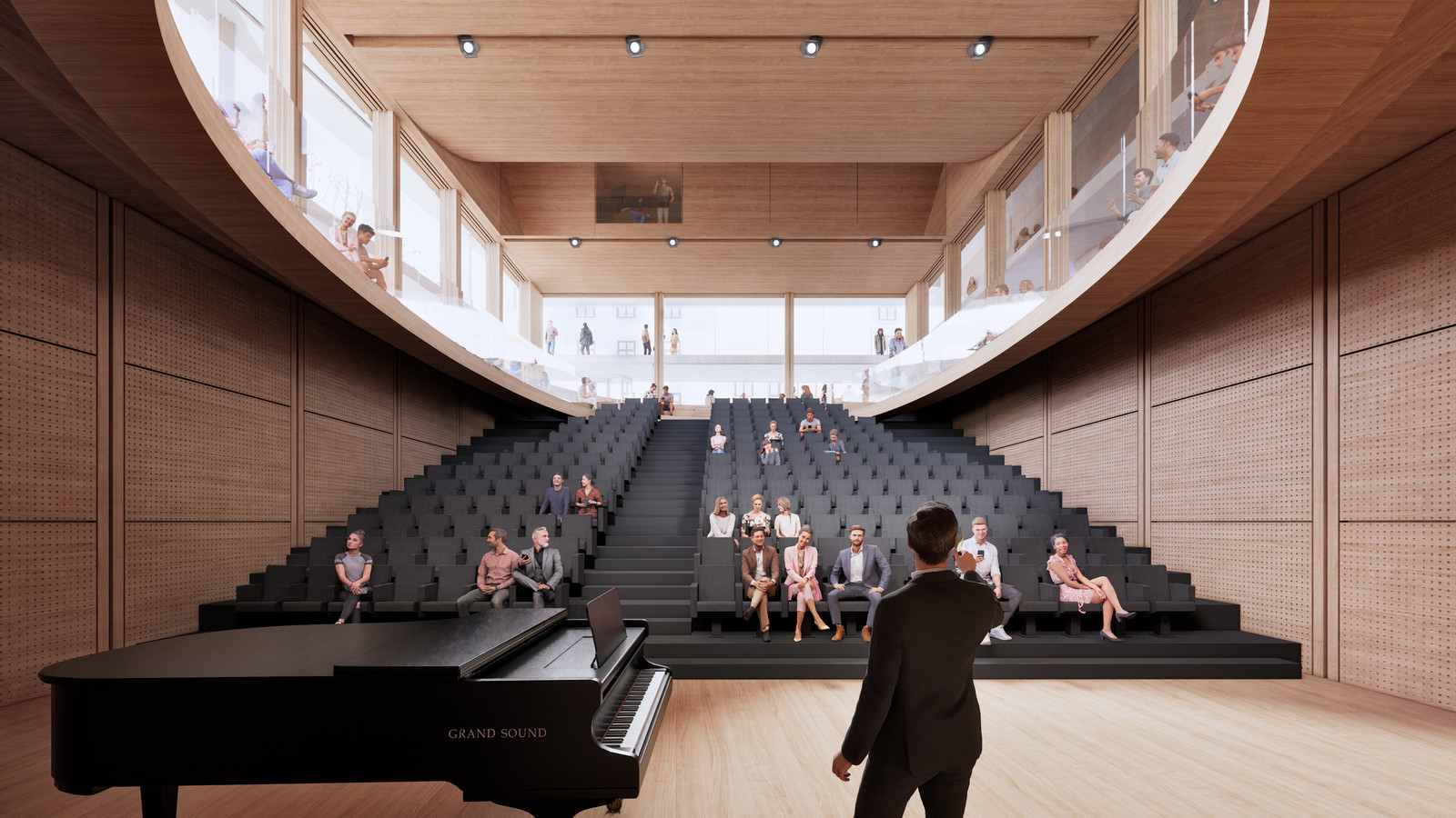 Podstawowym założeniem ideowym było zaprojektowanie Auli Miejskiej jako budynku otwartego, mającego integrować społeczność miasta Rzeszowa. Otwartość na mieszkańców i ich potrzeby budynek Auli Miejskiej reprezentuje zarówno swoją funkcją, jak i swoją formą. Budynek Auli Miejskiej ma być współczesnym centrum społeczno-kulturalnym, łącząc dziedzictwo historyczne z nowoczesnością. Aula Miejska ma promować aktywny udział społeczności mieszkańców w tworzeniu miasta, a wizualnym odzwierciedleniem tych zadań jest jej zewnętrzna i wewnętrzna forma. Elewacje budynku tworzone są przez transparentne i półtransparentne płaszczyzny kolejnych kondygnacji. Widoczne o każdej porze wnętrze Auli zachęca do wejścia i uczestnictwa we wspólnotowych wydarzeniach kulturalnych.