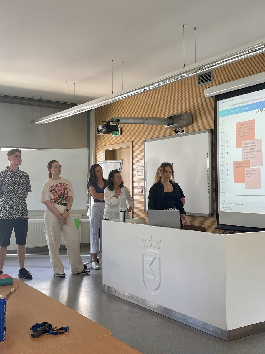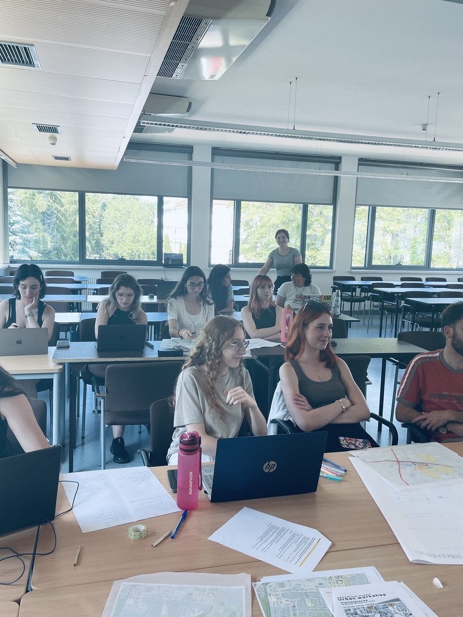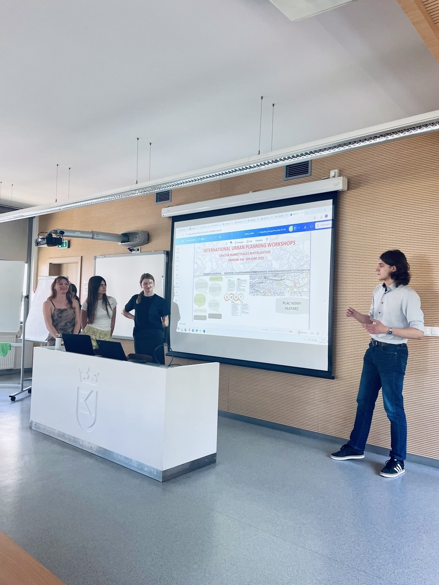 Piątek był dniem finalizacji projektów oraz prezentacji końcowych, które odbyły się z udziałem zaproszonych gości – przedstawicieli Urzędu Miasta Krakowa z Referatu Rewitalizacji Miasta i Regeneracji Targowisk oraz Wydziału Strategii i Funduszy Europejskich. W wydarzeniu uczestniczył także ekspert ds. planowania przestrzennego z Towarzystwa Urbanistów Polskich, ekspertka tematu targowisk i wykładowczyni Akademii Śląskiej, oraz pracownicy Uniwersytetu Jagiellońskiego realizujący projekt SURFIT (Scaling Urban Regenerative Food System in Transition), który nawiązuje do tematyki warsztatów.