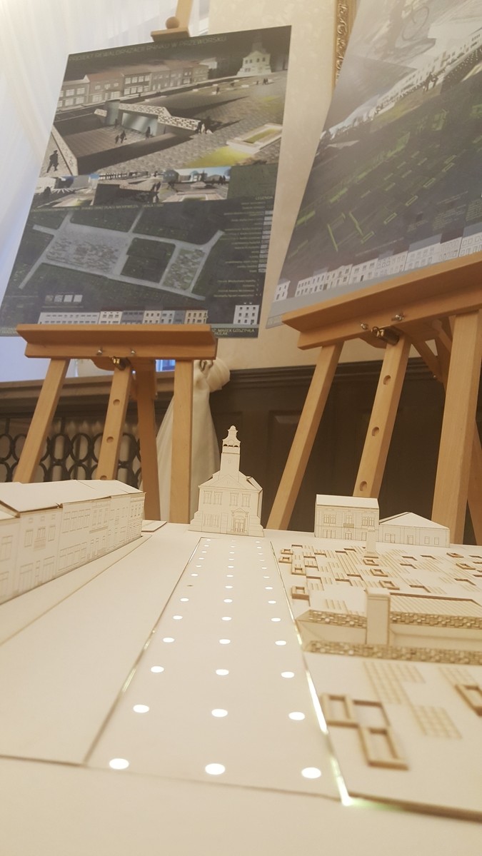 Gdy nadszedł czas prezentacji, zebraliśmy się w sali narad w ratuszu. Na początku, burmistrz wygłosił mowę wstępną i przywitał gości. Następnie, głos zabrał prodziekan prof. Bartosz Miller, a także prof. Marek Gosztyła, który przedstawił zgromadzonym, czym charakteryzuje się podejście do omawianego tematu młodych inżynierów architektury oraz wytłumaczył istotę całego zagadnienia. Kolejnym etapem miała być już nasza prezentacja. Każda z grup wyznaczyła lidera, który w imieniu swojego trzyosobowego zespołu prezentował i omawiał koncepcję rewaloryzacji rynku.
