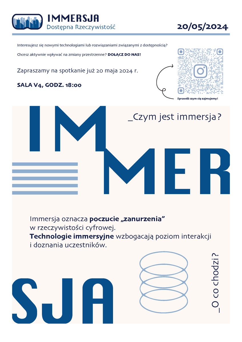 W ramach działalności koła będą prowadzone badania z wykorzystaniem technologii immersyjnych, mające na celu wysunięcie wniosków do tworzenia inkluzywnych przestrzeni miejskich.