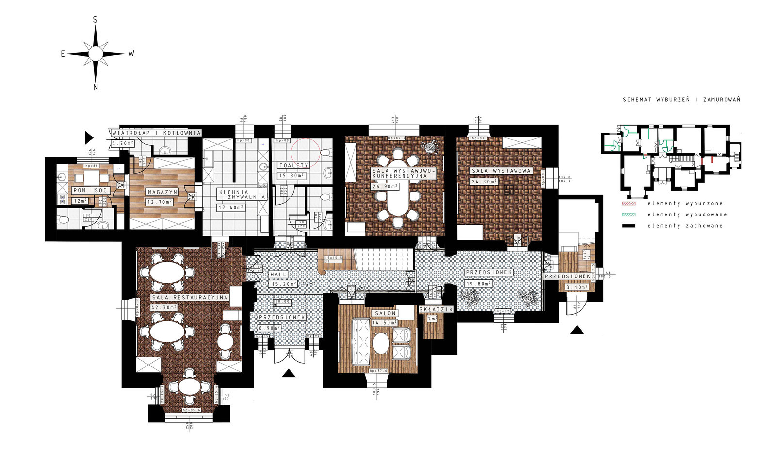 Zespół, w którego skład weszły studentki kierunku architektura: Iryna Danyliuk, Anna Gardzińska, Daria Józefczyk, Natalia Możdżeń, Natalia Pacia, Gabriela Stanula, Gabriela Walczyna, Ilona Wójcik, Monika Wzorek, przeprowadził inwentaryzację architektoniczną budynku, która stała się podstawą do sporządzenia aktualnej i szczegółowej dokumentacji obiektu. Na miejscu przeprowadzono badania architektoniczne i inwentaryzację zabytkowych detali, które dostarczyły informacji o stanie całego zabytkowego zespołu budynków. Opracowano również projekt adaptacji z pomieszczeniami przeznaczonymi na ekspozycje muzealne.