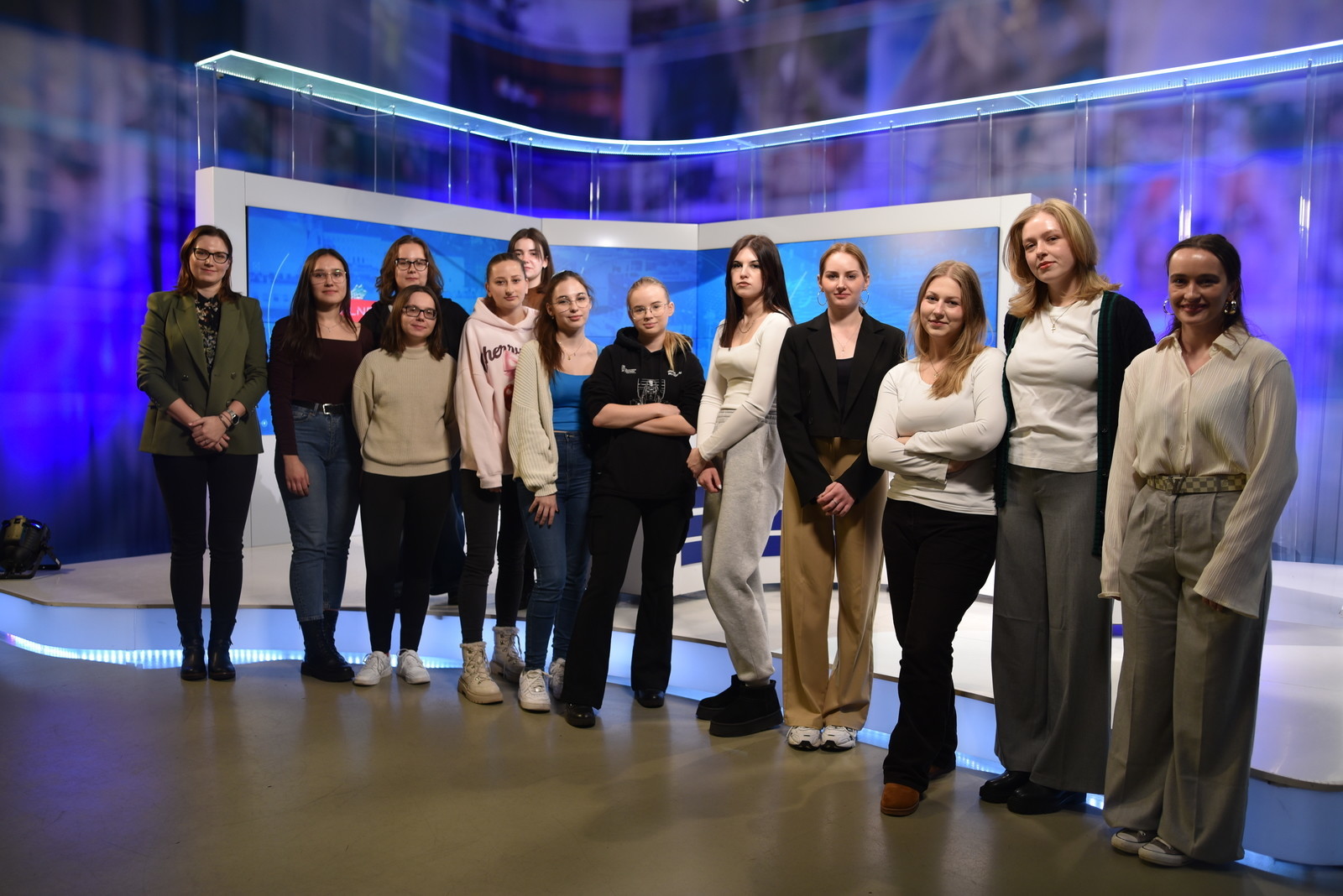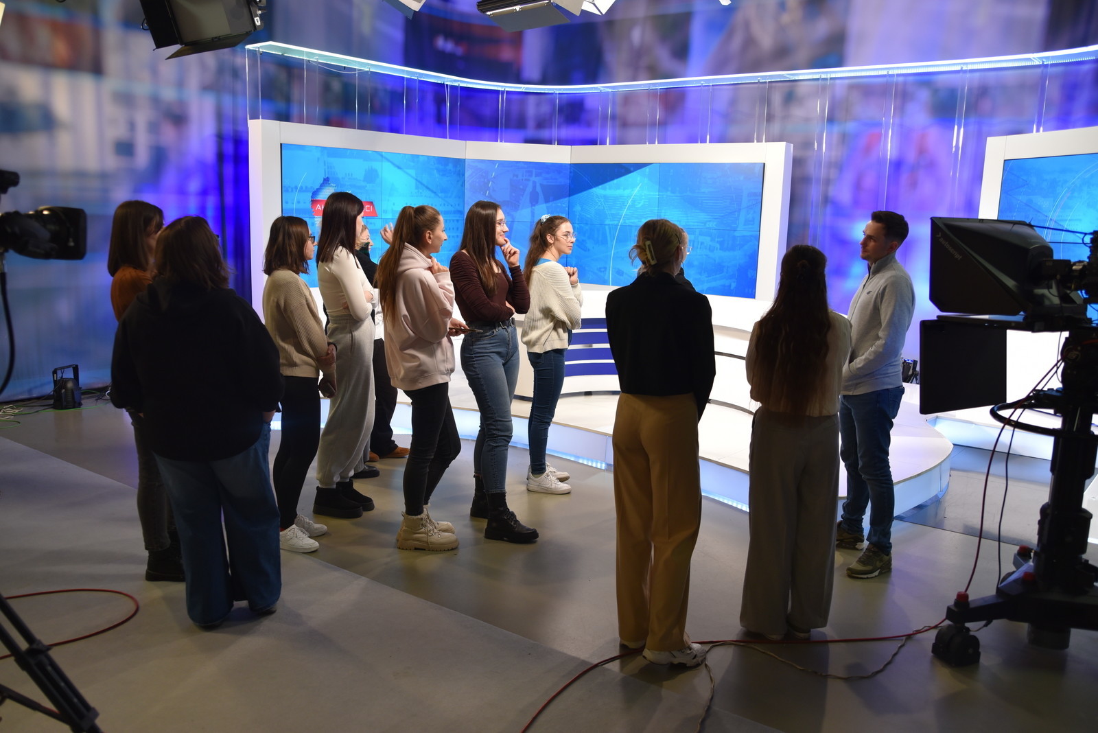 Pod opieką mgr inż. arch. Magdaleny Jandy uczestniczki miały niepowtarzalną okazję obserwować transmisję programu „Aktualności” na żywo oraz zapoznać się z organizacją pracy w telewizji. Po zakończonej emisji zwiedziły studio telewizyjne, gdzie mogły przyjrzeć się technicznym i przestrzennym rozwiązaniom wykorzystywanym podczas nagrań. Program wizyty obejmował także oprowadzenie po całym obiekcie, w trakcie którego studentki poznały specyfikę pracy dziennikarzy, grafików, operatorów kamer oraz techników.