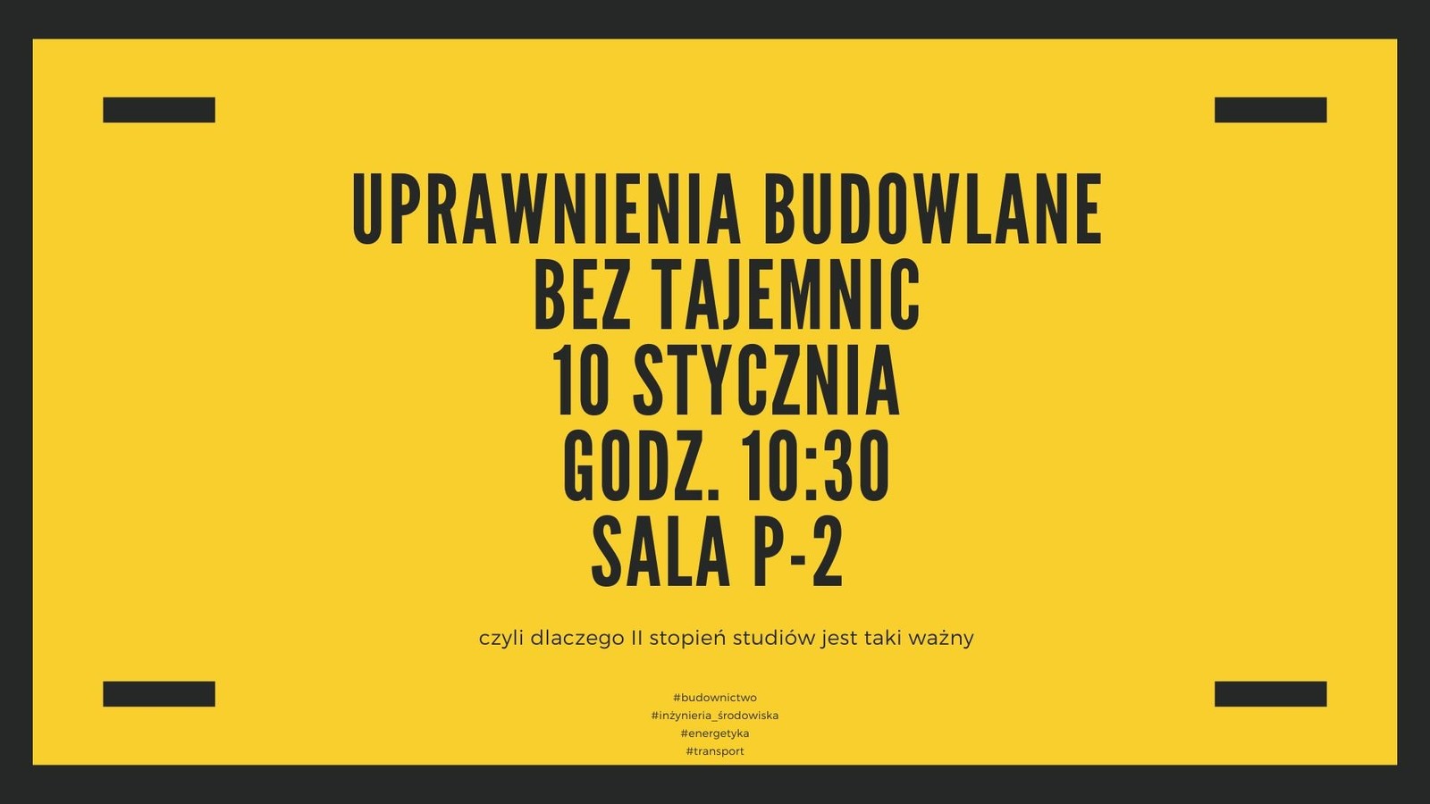 Uprzejmie zapraszamy na spotkanie informacyjne w sprawie uprawnień budowlanych i o korzyściach z ukończenia studiów II stopnia w kontekście w/w uprawnień. Spotkanie poprowadzi dr inż. Zbigniew Plewako, pracownik WBIŚiA i członek Podkarpackiej Okręgowej Izby Inżynierów Budownictwa.