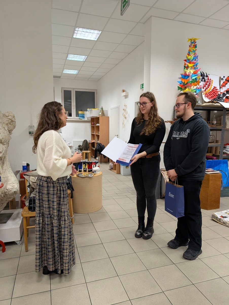Po zakończeniu części twórczej każdy z uczestników otrzymał pamiątkową statuetkę, zaprojektowaną przez Wydziałowy Samorząd Studencki, wraz z podziękowaniami przekazanymi przez Przewodniczącą Samorządu Wydziałowego w imieniu całego Samorządu. Był to symboliczny, ale bardzo znaczący gest, podkreślający wartość wspólnego zaangażowania oraz doceniający czas i energię poświęcone na udział w wydarzeniu.