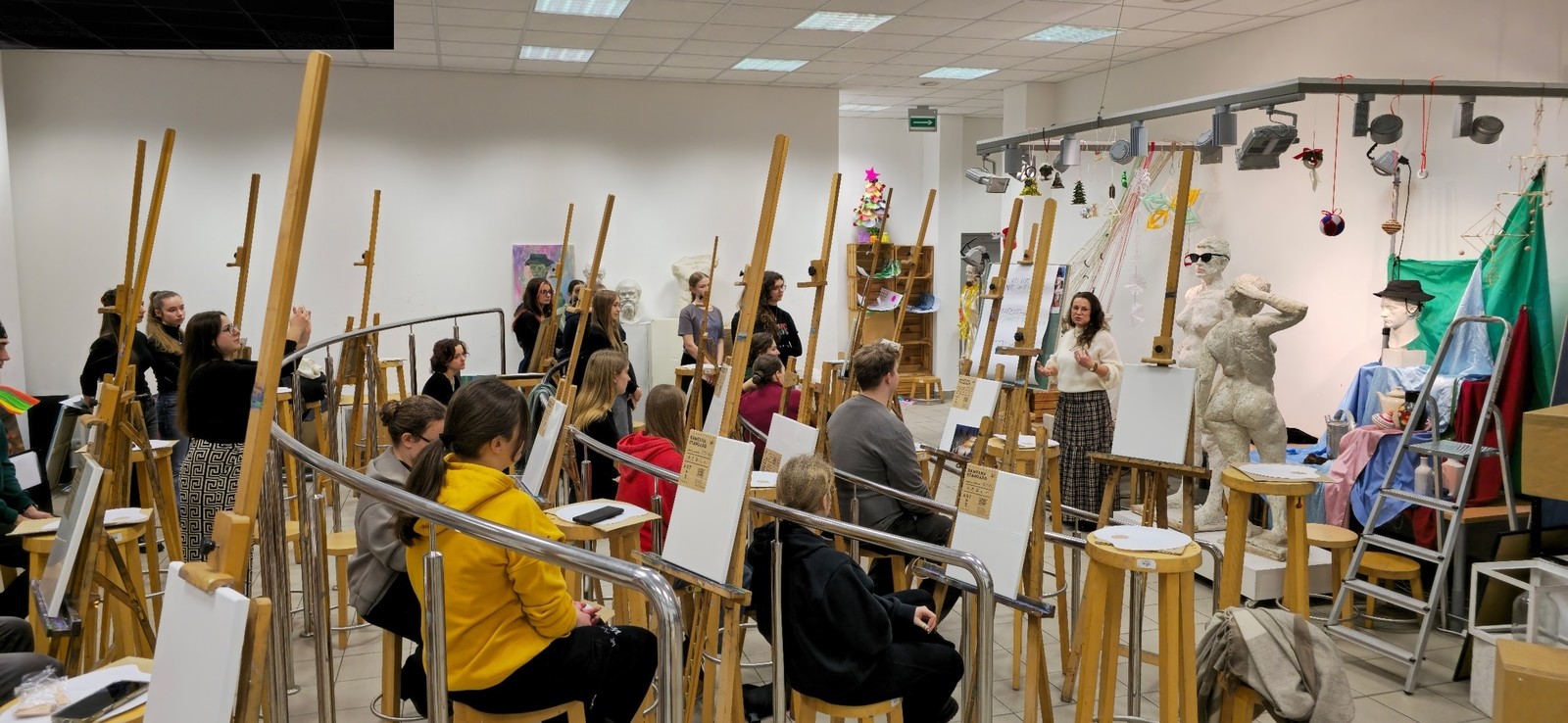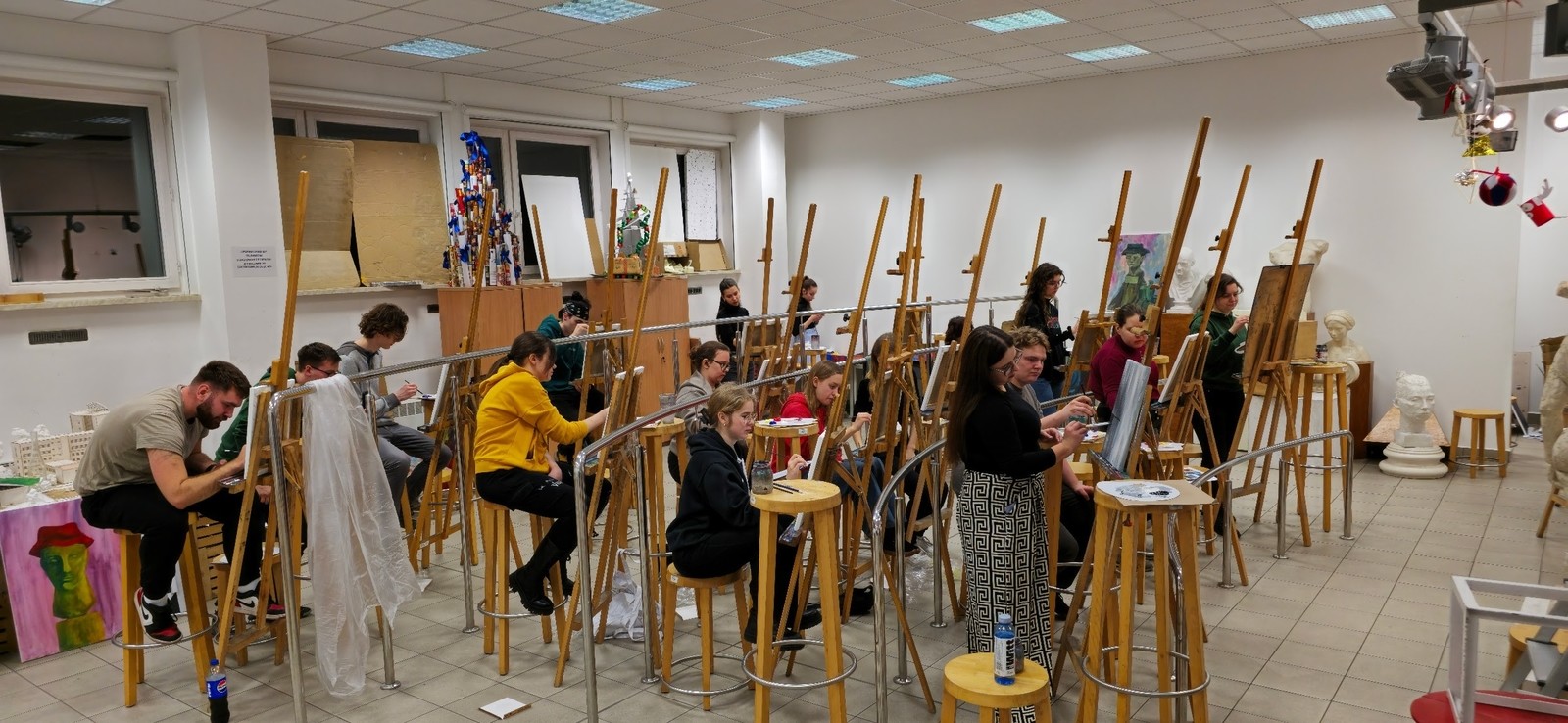Podczas warsztatów powstało 29 niepowtarzalnych prac, które zostaną zaprezentowane na wystawie będącej zwieńczeniem wydarzenia. Każda praca była indywidualna, pełna emocji i osobistej interpretacji — stanowiła zapis chwili, nastroju i wewnętrznego świata autora. To wyraźnie pokazało, że sztuka nie jest przypisana do jednego kierunku studiów ani jednego obszaru zainteresowań, lecz stanowi uniwersalny język, dostępny i potrzebny każdemu.