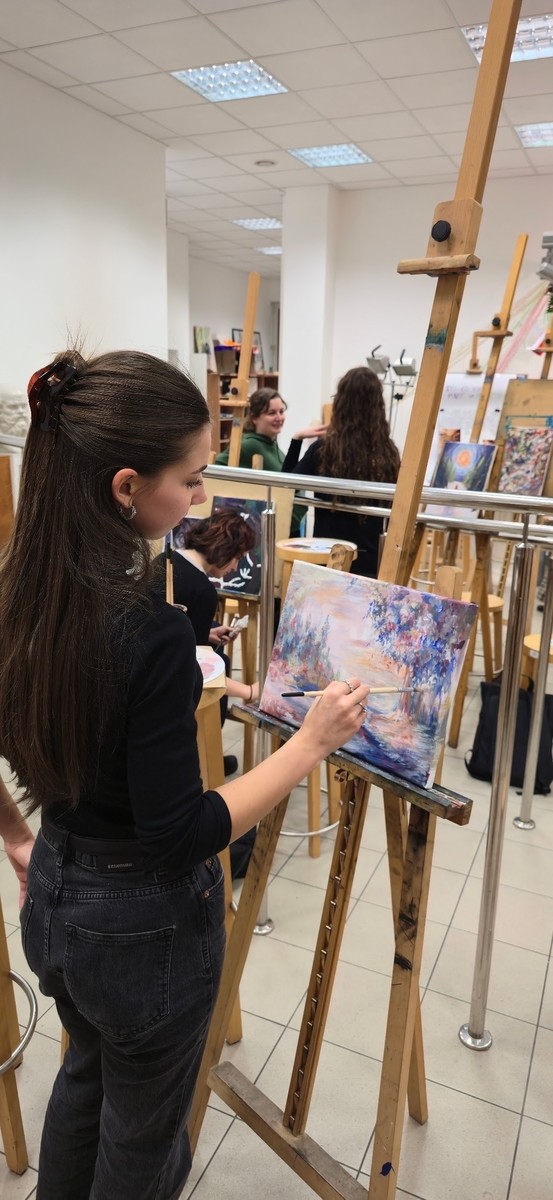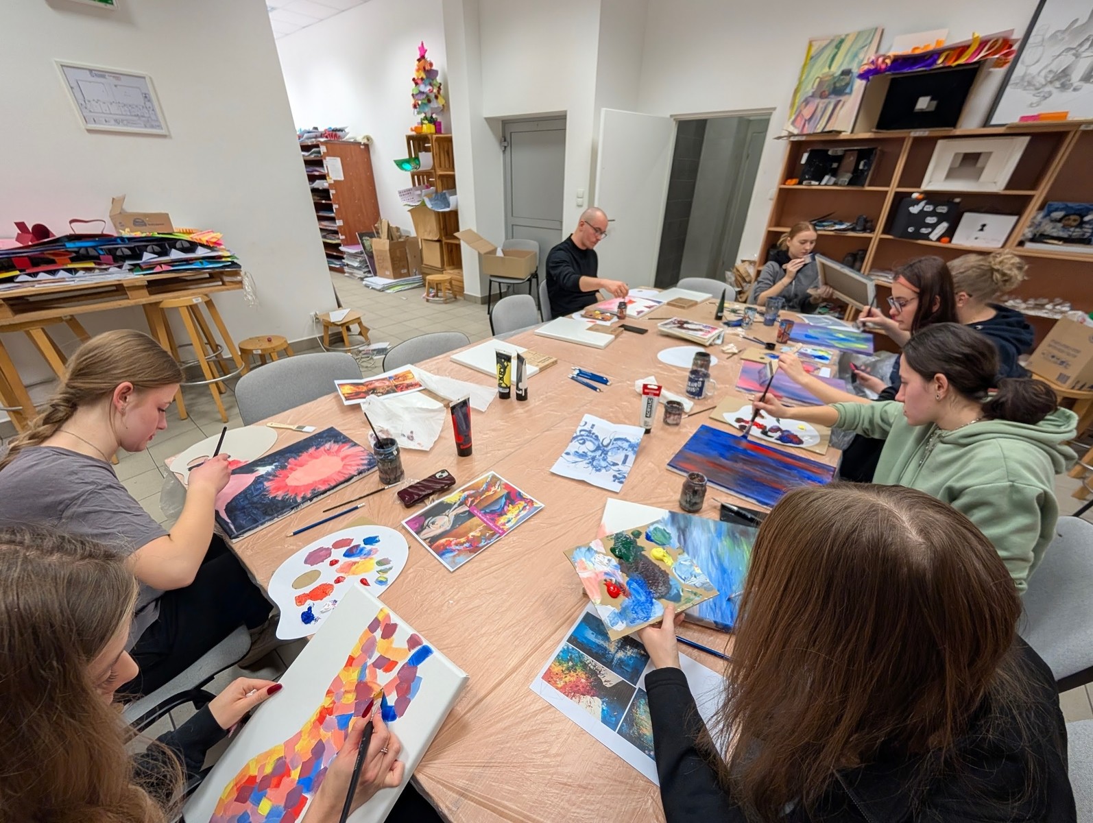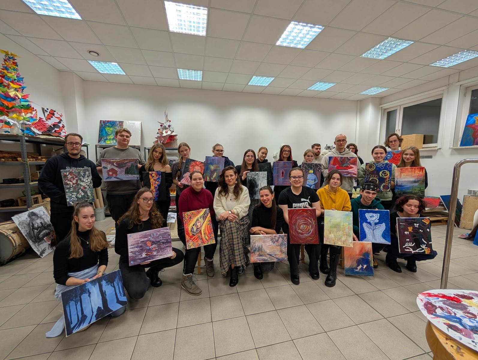 Spotkania ze sztuką pełnią niezwykle ważną rolę na studiach — są momentem integracji, budowania relacji, rozwijania wrażliwości i kreatywności, ale także okazją do spędzenia czasu w sposób wartościowy i inspirujący. Warsztaty malarskie stały się przestrzenią dialogu, wspólnego przeżywania emocji oraz odkrywania nowych form ekspresji, pokazując, że rozwój artystyczny może i powinien iść w parze z rozwojem akademickim.