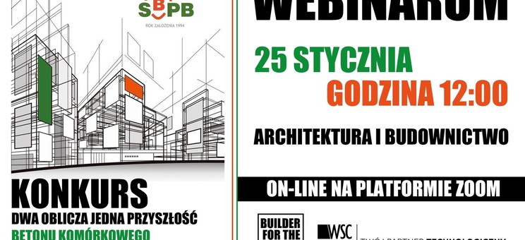 Redakcja miesięcznika Builder oraz Stowarzyszenia Producentów Betonów zaprasza na webinarium "Dwa oblicza jedna przyszłość betonu komórkowego i prefabrykacji betonowej" które jest organizowane w ramach I edycji konkursu architektoniczno-inżynierskiego pt. „Dwa oblicza, jedna przyszłość”.