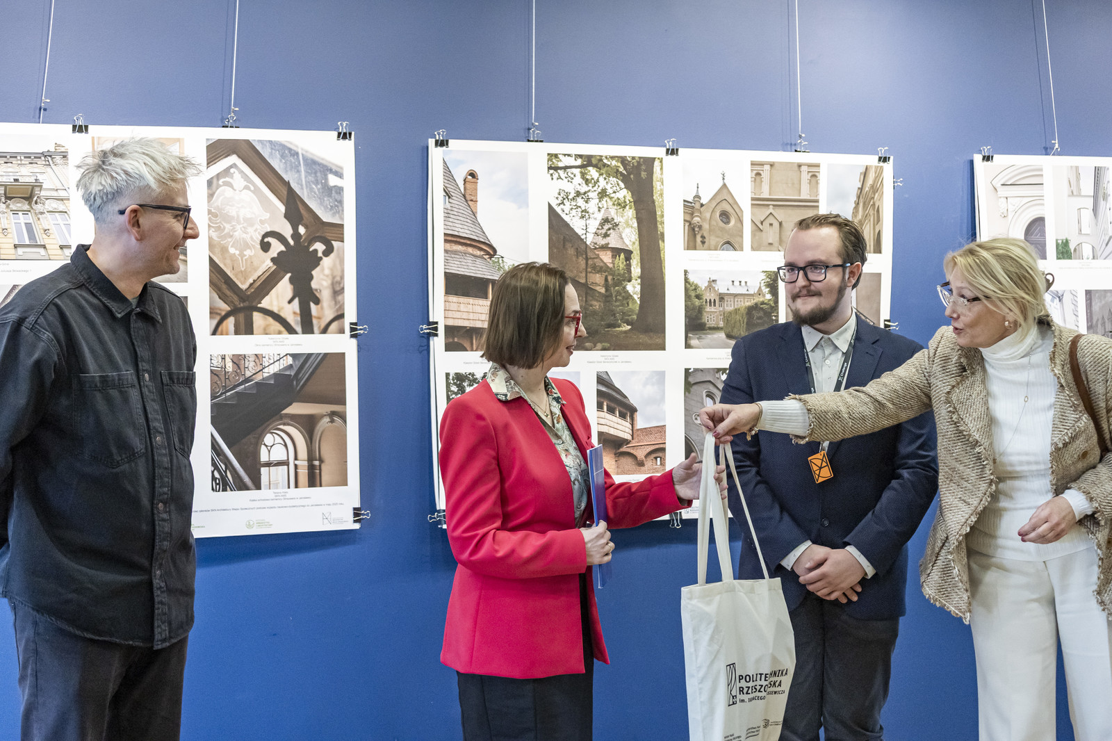 W dalszej części wernisażu swoimi refleksjami na temat wystawy podzielił się Dziekan WBIŚiA, prof. dr hab. inż. Lech Lichołai, prof. dr hab. inż. Aleksander Kozłowski, dr hab. inż. Lesław Bichajło prof. Uczelni oraz zaproszeni goście: Aleksander Busz, Damian Pękalski, Przemysława Gąsiorski pracownicy Wojewódzkiego Urzędu Ochrony Zabytków.