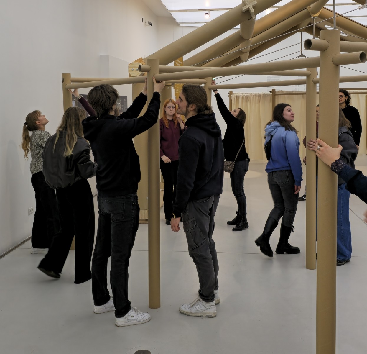 Podczas wizyty w muzeum Manggha odbyły się warsztaty, podczas których uczestnicy budowali proste struktury z tub papierowych, nawiązując do wystawy. Zajęcia umożliwiły praktyczne poznanie zasad konstrukcyjnych, skali i możliwości materiałów.