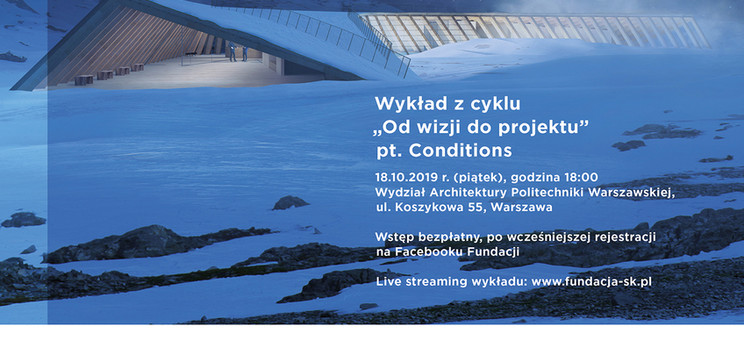 Wystąpienie pt. "Conditions" jest częścią naszego cyklu wykładów "Od wizji do projektu" współorganizowanego przez Wydział Architektury Politechniki Warszawskiej. Jego tematem będzie m.in. artystyczne wizjonerstwo i respektowanie tradycji w praktyce architektonicznej.