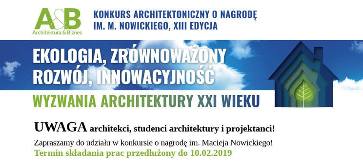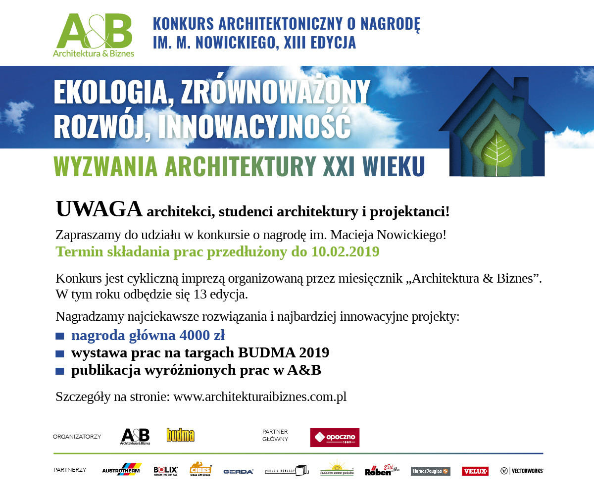 Wydawca miesięcznika „Architektura & Biznes” zaprasza do wzięcia udziału w XIII edycji konkursu im. Macieja Nowickiego. termin nadsyłania prac został przedłużony do 10 lutego br.